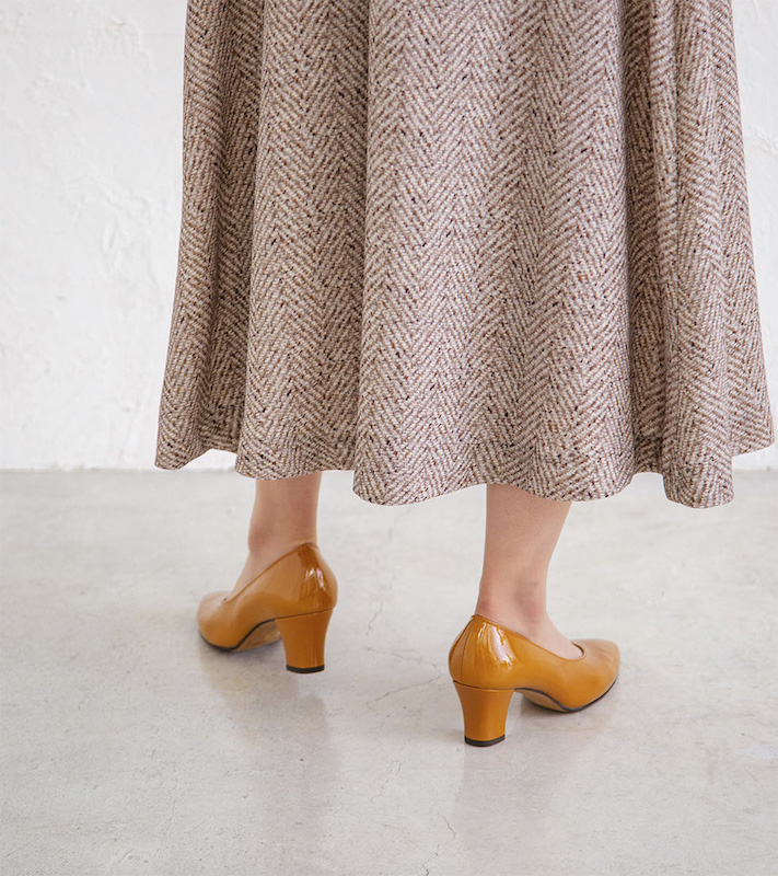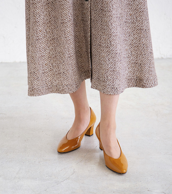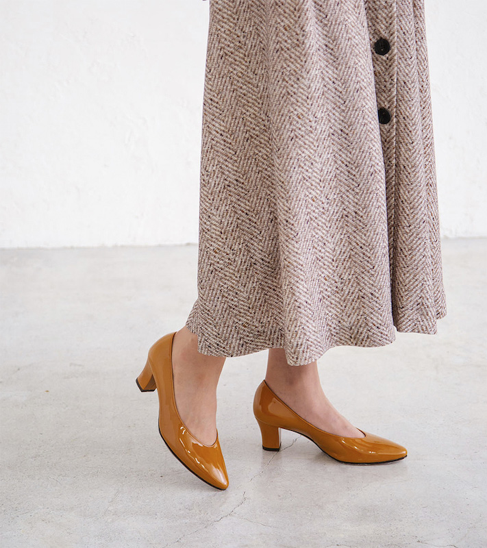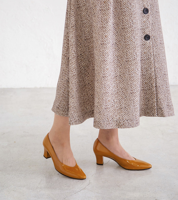 ベーシックパンプスの木型を使い、よりシンプルで洗練されたデザインとカラーバリエーションを提案しているプレーンパンプスシリーズ。安定感のある太いブロックヒールと甲の深いソフトポインテッドのVカットが、6.0cmの高さを感じさせないトレンド感のあるデザインです。ーーーーーーーーー