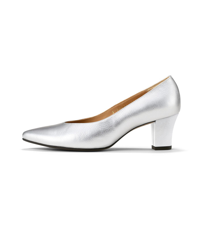 【シアーシルバー】6.0cm太ヒール ソフトポインテッドトゥVカット